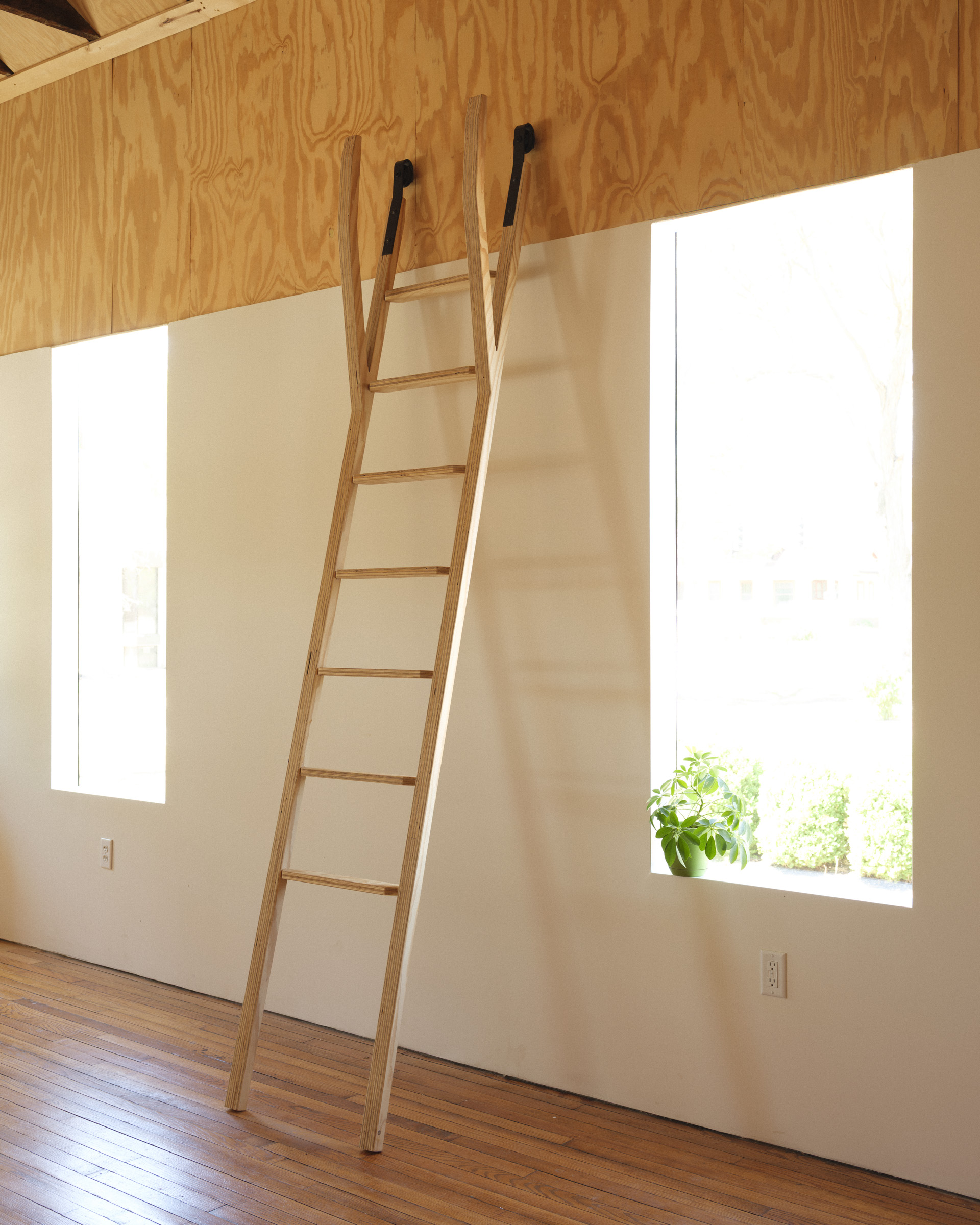 Designing versatile movable furniture was a big part of the project. Custom pieces include powered, nesting work tables (ArTables), stackable bookcases that double as benches, and a rolling ladder. All are built from Fir marine plywood to match the interior sheathing of the building.